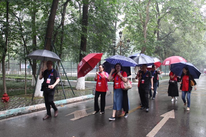 淅淅沥沥的雨水无法浇灭校友们回到母校激动的心情,他们手持雨伞在学生志愿者的引导下雨中参观怀念曾经的校园。沿着南大门、图书馆、学生宿舍楼、博物馆以及维州广场这一条怀旧路线参观完后,84级返校的340余名校友、曾经任课的老教师代表和学校现任领导在民族博览中心大楼前合影留念,10:30校友们集中参加了在学校体育馆举办的西南民族大学第七届校友周暨纪念84级(88届)校友毕业30周年座谈会,优秀校友沙玛阿果作为校友代表上台与校领导合影。中午,校友们在食堂共享自助午餐,回忆校园食堂的美好生活。随后前往新校区参观母校的新变化、新发展。