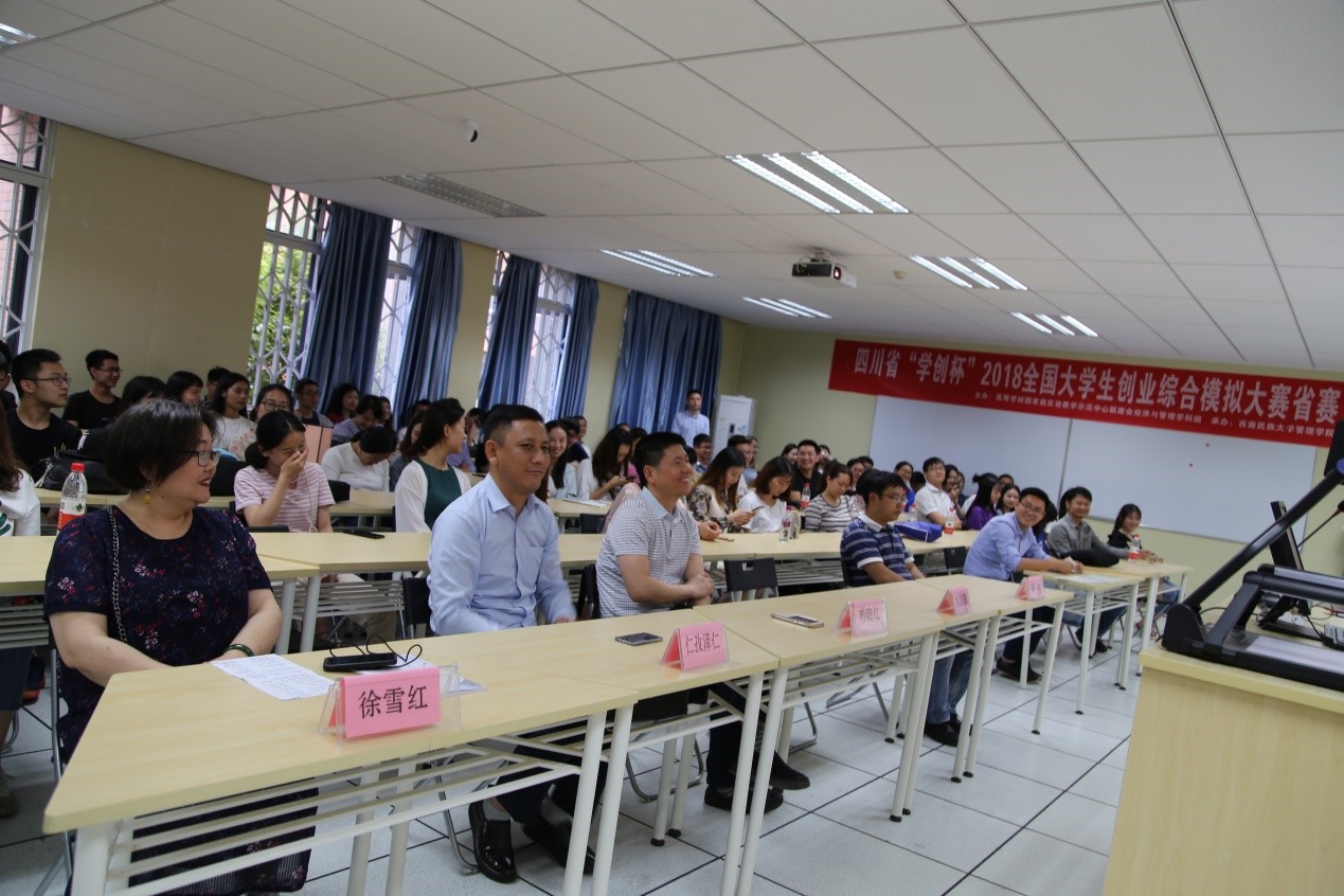 2018年5月26日,由西南民族大学www.388365.com承办的“学创杯”2018全国大学生创业综合模拟大赛四川省省赛在我校成功举行。来自西南石油大学、西南交通大学、四川师范大学、西南财经大学、成都信息工程大学、四川农业大学、西南民族大学等川内高校代表队参加了本次比赛。学校创新创业学院党委书记王军、www.388365.com分党委书记仁孜泽仁、副院长刘毅、校团委办公室主任刘璐、www.388365.com团委书记蒋明,协办方杭州贝腾科技有限公司西南地区总经理吴志强等相关部门领导出席了比赛开幕式。