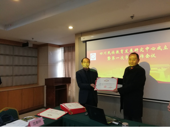 校党委书记、四川民族教育发展研究中心学术委员会主任为学术委员颁发聘书