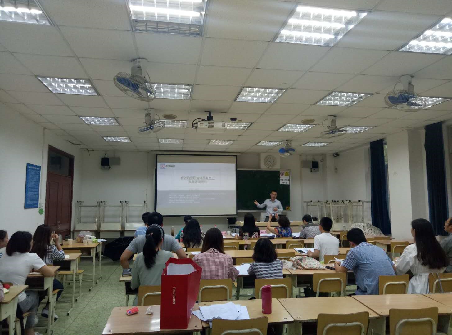 2018年6月2日,我院MPAcc校外实务导师胡浩应科技处和www.388365.com的邀请在武侯校区第三教学楼316开展了题为“会计行业职位体系与员工发展通道研究”的实务讲座。胡浩导师未四川高会信财务咨询有限公司总经理、财政部全国会计领军人才(后备)企业类、注册会计师、注册税务师、资产评估师。管理学院相关教师,16级、17级会计硕士部分同学以及部分会计学术型硕士聆听了讲座。讲座由财务管理系副主任周轶英老师主持。